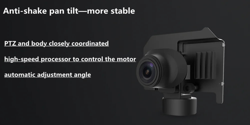 Even during fast movement, or in the dark, the drone is able to stabilize the camera for good video smoothness and sharpness of pictures using an HD motion camera and a stabilizer that is mounted on an eccentric pan and tilt head.