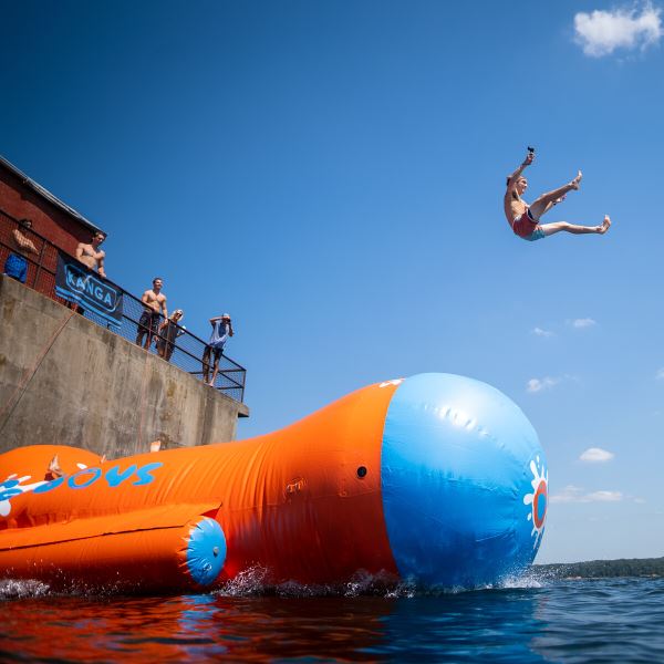 Experience the ultimate water thrill with the Inflatable Water Launch Pad, engineered for record-breaking performance and maximum launch height. Designed for cliffs, platforms, or two-story houseboats, this launch pad has set two world records and is a favorite of Nitro Circus and major news outlets. Its innovative design ensures superior energy transfer, propelling users higher and farther than any competitor, with a quick setup time of under 45 minutes.